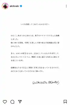 あきらは「わたくしあきらかにあきらは、歌手のナナヲアカリさんと結婚しました」と、直筆の署名を添えて報告。