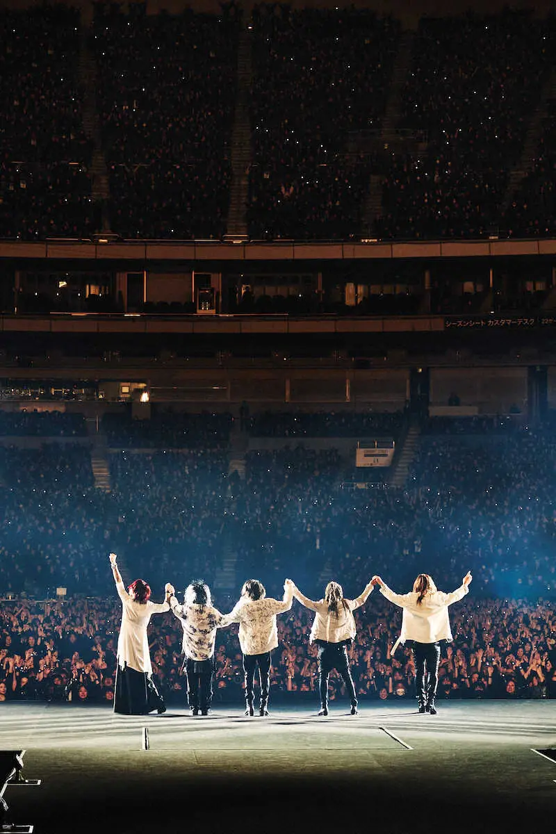 東京ドームで2020年12月以来となるライブを行ったLUNA SEA。ライブ冒頭、センターステージで円陣を組み気合いを入れた