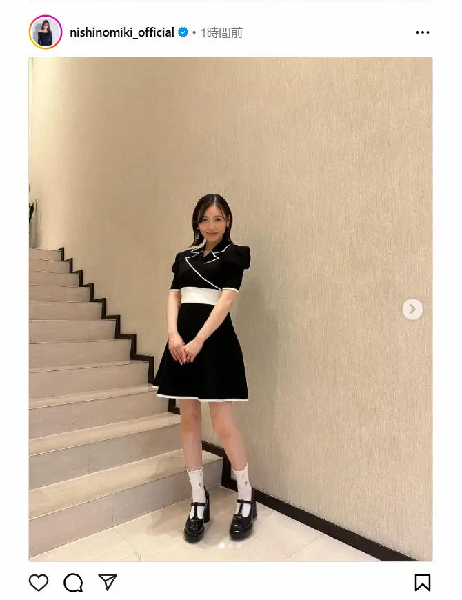 西野は「産後体重が完全に戻りましたー」と報告。最新ショットをアップし、ミニ丈ワンピースからスラリとした美脚をのぞかせた。