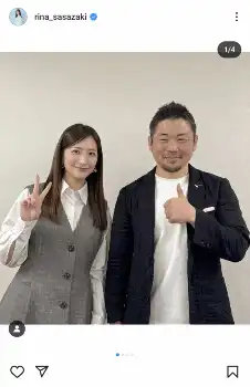 笹崎里菜 「お久しぶりのふみさん」ラグビー元日本代表と2ショット「楽しかったです」