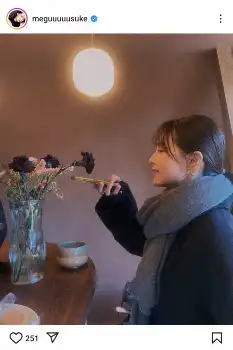 佐藤めぐみ スマホで花瓶に生けられた花をパシャリ…美しい横顔ショット披露