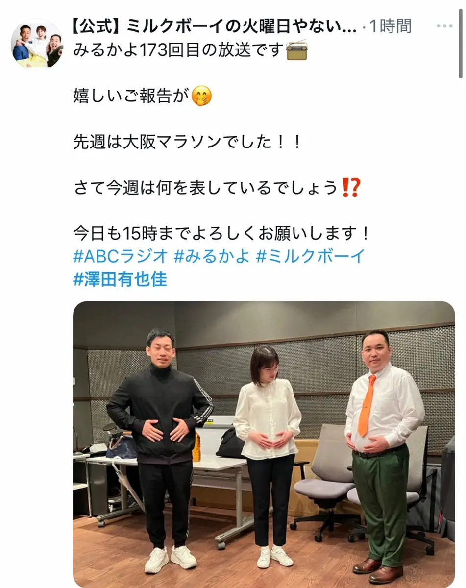 ABC・澤田有也佳アナウンサー 妊娠発表のABC・澤田有也佳アナがラジオでも幸せ報告 わが子の名、ミルク… ギャラリーで見る この記事のフォト 2025年03月04日の画像一覧 もっと見る 2025年03月04日の画像をもっと見る