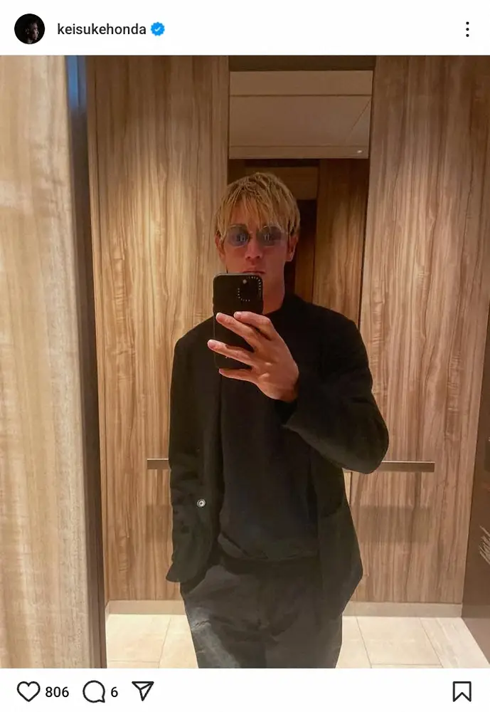 サッカー元日本代表のMF本田圭佑(38)が4日、自身のインスタグラムを更新。最新ショットが反響を呼んだ。
