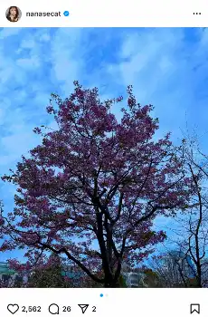 昨年に国学院大神道文化学部を卒業し、現在は大学院に進学している相川。たくさんの花が咲いた木の写真をアップし、「春がもうそこまで来てる なのに昨日は(雪だるまの絵文字)が降って寒かった」とつづった。
