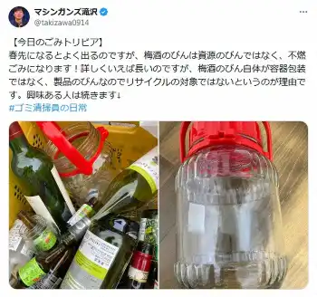 「マシンガンズ」の滝沢秀一 Photo by スポニチ 意外!?「春先になるとよく出る」リサイクル出来ない“びん”をごみ清掃芸人… ギャラリーで見る この記事のフォト 2025年03月06日の画像一覧 もっと見る 2025年03月06日の画像をもっと見る