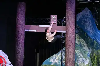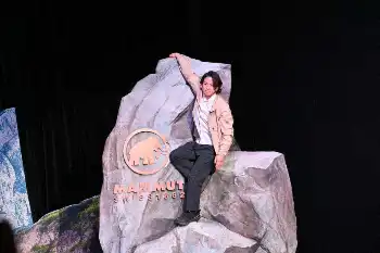 新作アイテムを着用し「(マムート製品の着心地は)いつもほぼほぼ裸ですと言っているんですけど(新作は)より裸。着てますよね?と思っちゃうくらい」と感動を語った。