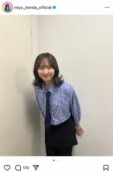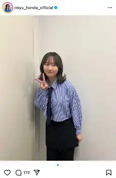 本田は「黒髪になりました」とコメントし、壁際でピースをする写真などをアップ。