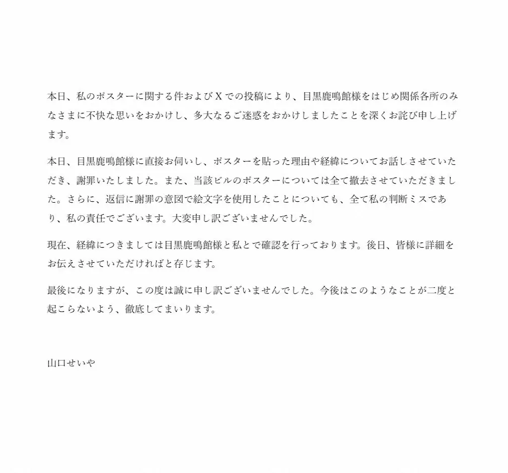 山口せいや氏X(@seiyama25)から 都民ファ・山口氏 ポスターを「目黒鹿鳴館」に無断で“ありえない”貼り方…… ギャラリーで見る この記事のフォト 2025年03月07日の画像一覧 もっと見る 2025年03月07日の画像をもっと見る