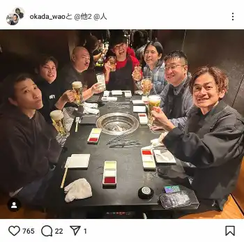 この投稿にフォロワーからは「松竹会 みなさん楽しそうでよきです」「わ~!松竹芸人大集合だ~!岡田師匠、背負ってますね~!」「反省会にまぜて欲しい」「笑顔が一番!!」「反省はしてなさそう笑」などの声が集まった。