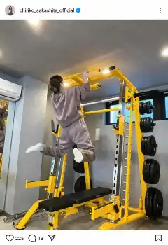 この投稿にフォロワーからは「千里子さんカッコいい!!」「凄い!カッコいい」「けんすいできるのすごーい」「千里ちゃんスゲ~」「かっけー」など称賛の声が寄せられたものの、坂下はハッシュタグで「懸垂」「本当は出来ません」とネタばらし。あくまでも"懸垂風"に撮った写真であることを明かしていた。