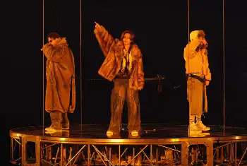 幕開けからNumber_iが自分たちの色に染め上げた。会場中央に浮き上がる気球の幕が下りると、空中に浮かぶ3人が登場。「俺たちがNumber_iだ!もっと盛り上がれ」とあおり、オープニングナンバーの「BON」から彩られたペンライトが揺れた。