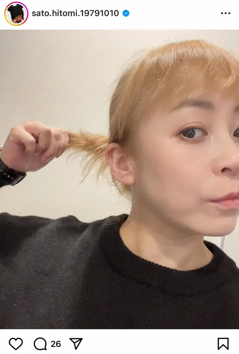 佐藤仁美 雰囲気ガラリ!金髪自撮りショットにファンくぎ付け「一瞬誰かと…」「超似合ってます」