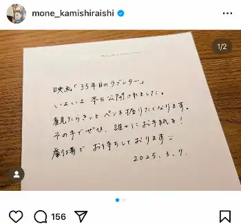 同作について上白石は「いよいよ 本日公開されました。観たらきっとペンを握りたくなります。その手でぜひ、誰かにお手紙を!劇場でお待ちしております」と直筆メッセージでしたためた。