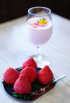 永瀬は埼玉県産ブランドいちご「あまりん」を使ったメニューをオーダー。同メニューは1日目の午前、午後のおやつでも頼んでいる。