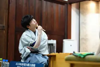 15:14 記録係の位置に立ち、首をかしげながら盤面を眺める