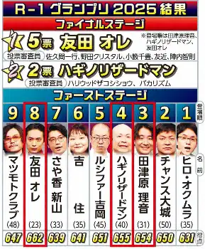 ひとり芸日本一決定戦「R―1グランプリ2025」が8日、東京・台場のフジテレビで行われ、友田オレ(23)が史上最年少で23代目王者に輝いた。史上最多5511人の頂点に立ち、賞金500万円を手にした。