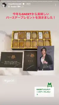川崎は「今年もGACKTからバースデープレゼントが届きました」と書き出し、写真を投稿。プレゼントは、美食家のGACKTをうならせた逸品だけを取り扱うという美食ブランド「GACKT極シリーズ」の「極ほたて3種セット(燻油漬け、焼き、ソフト)」で、「マヨさんおめでとー!!」と書かれたGACKTのメッセージカードも添えられていた。