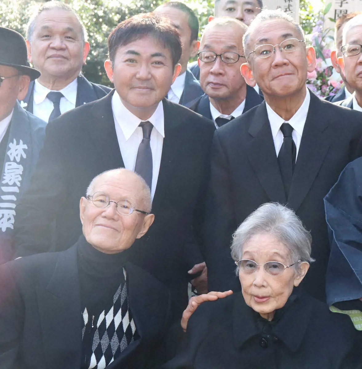 式典には、長男の林家正蔵(62)、次男の二代目林家三平(54)、漫画家ちばてつや氏(86)らも参列した。