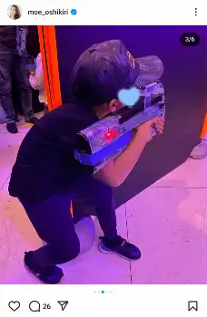 フォロワーからは「すごい楽しそうですね」「遊びにまで向上心の高いもえちゃんに笑っちゃいました」「もえちゃんかっこいい」「素敵です」「息子くん、構え方キマってるー」「もえちゃんがゲームをしている姿、初めて見たかも」などの声が寄せられた。