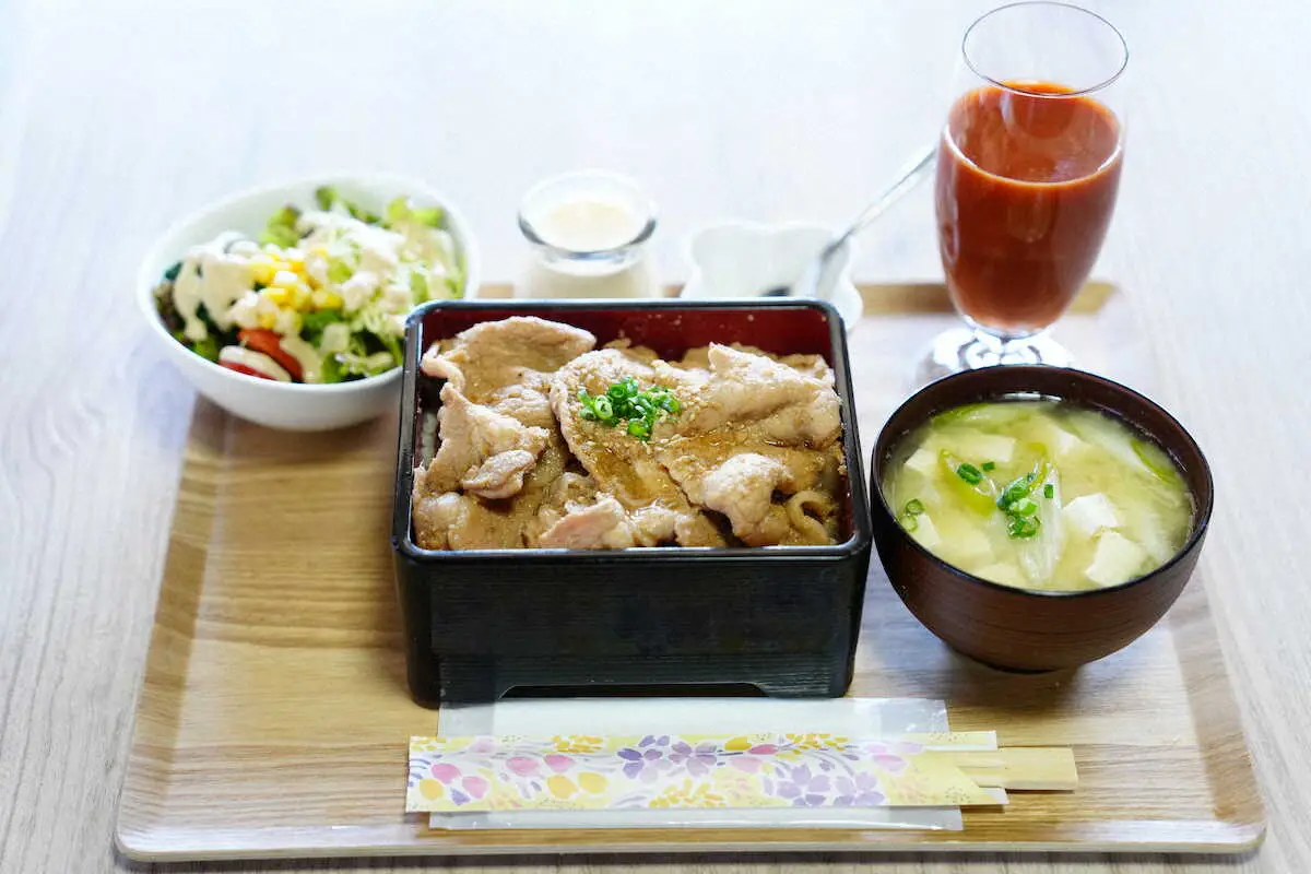 1日目は郷土料理で優しい味わいの煮ぼうとうを頼んでいたが、この日選んだのは、国産極上豚ロースに特製こうじを使った絶品たれ、たっぷりのしょうががガツンと来るおいしさが楽しめる一品だ。