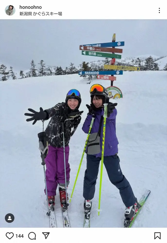石橋貴明の長女・穂乃香 人気女優との仲良しゲレンデショットに「お二人とも素敵」「イケメン過ぎ」