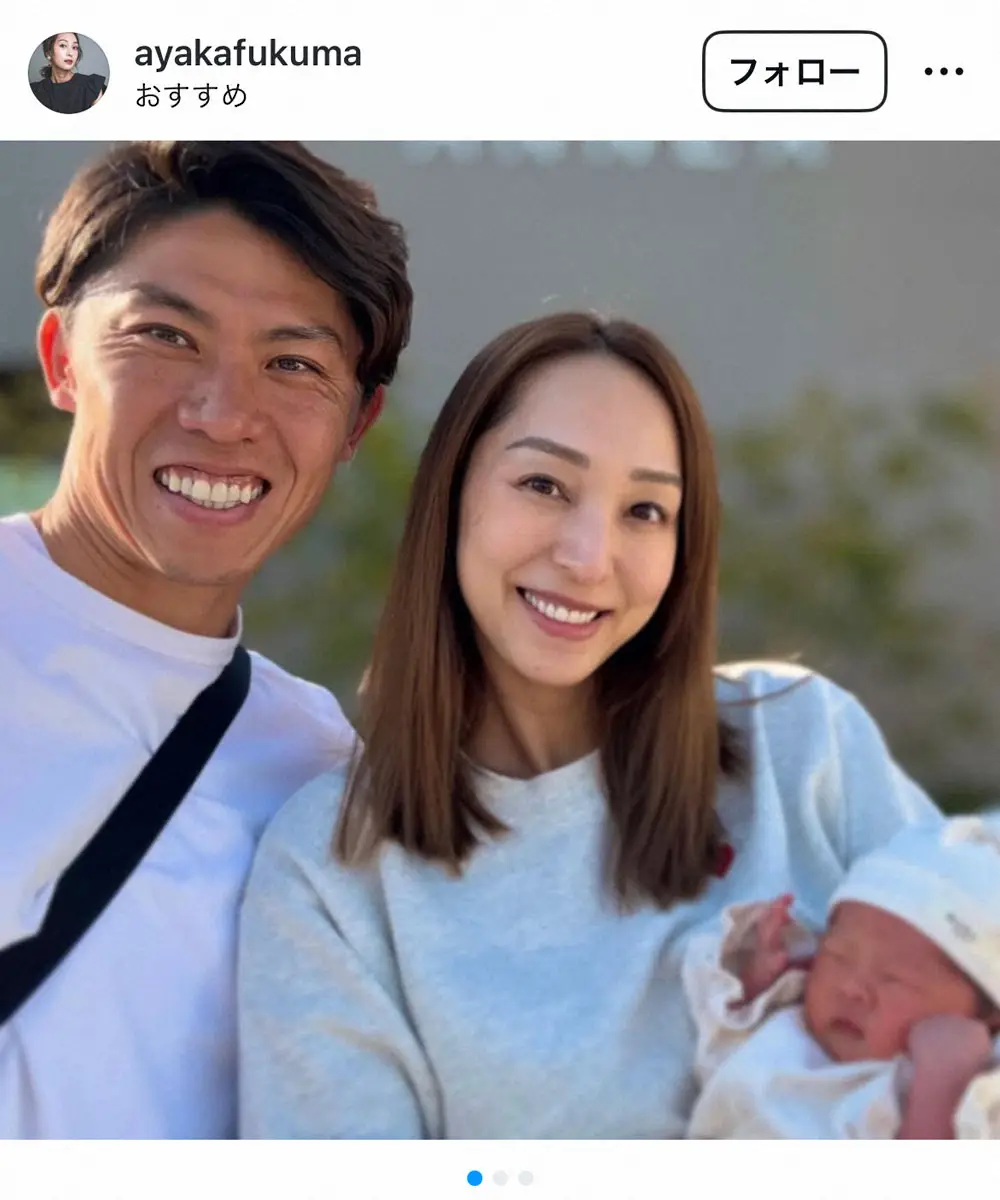 モデルの福間文香(36)が第3子を出産したことを11日までに自身のインスタグラムで発表した。夫は横浜やFC東京などで活躍したサッカー元日本代表DF太田宏介氏(37)。