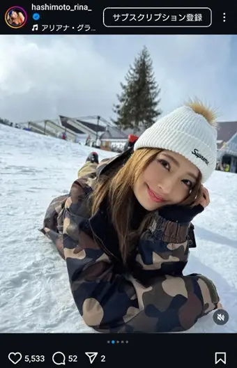 グラビアアイドルの橋本梨菜(31)が12日までに自身のインスタグラムを更新。雪上ショットを披露した。