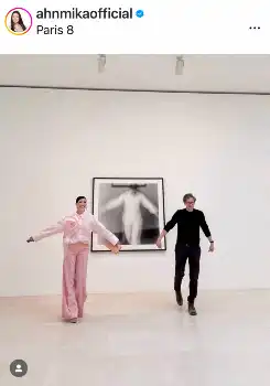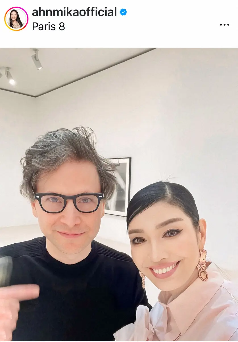 「夫の兄(義兄)の映画監督でアーティストのベネット・ミラーが、フランスはパリのGagosianギャラリーにて、AIを用いたアートの展覧会を開催 行って参りましたよ!」とツーショットで報告した。