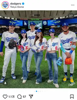 ガールズグループ「TWICE」の日本人メンバーからなるユニット「MISAMO」が16日、東京ドームで行われたドジャースと阪神のプレシーズンゲームの始球式に登場。ドジャースの球団インスタグラムではこの日、選手たちとの写真が公開され、反響を呼んでいる。
