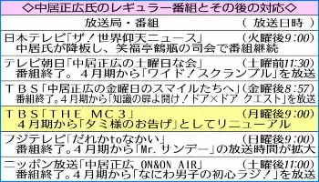 中居氏が出演していた番組で唯一、今後の対応が明らかになっていなかった「THE MC3」。同局関係者は「さまざまな可能性を探った末に、リニューアルに落ち着いた。MCが2人になるのでタイトルを変えて、セットも新たに作る」と話している。MCを1人加えた3人体制を維持する形も検討されたが、「結果的に制作陣は誰にもオファーを出さなかったと聞いています」(芸能事務所関係者)という。