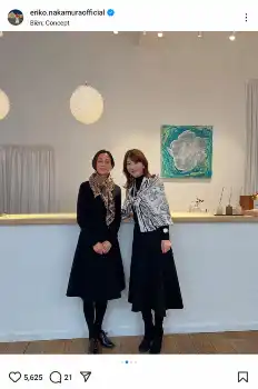 中村は「十和子さんとと~っても久しぶりにお会いしました」と報告。「お会いした途端、あっちょっとお揃いなスタイルってびっくり。全身黒に巻き方違いの大判ストール とても寒い日で完全に真冬スタイルに逆戻り」と、全身黒のファッションにストールを合わせた2人の姿を公開した。