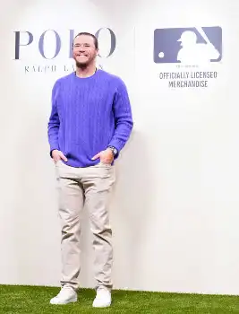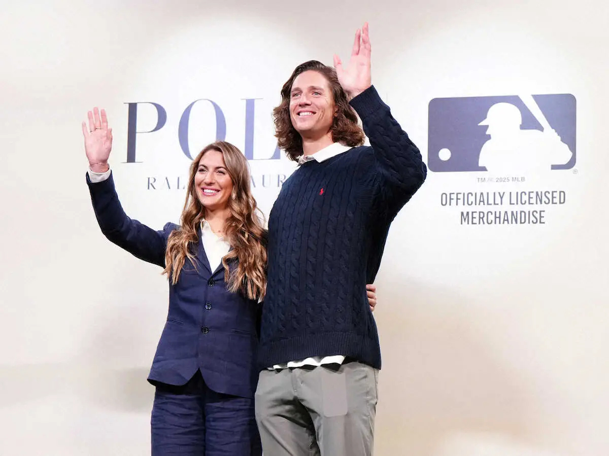 ドジャースのグラスノーはフィアンセとともに登場。ネイビーのセーター姿で「ポロのセーターは着心地が良い。2人でラルフを着ているんですけれども、彼女もとても素敵だなと思っています」と語った。