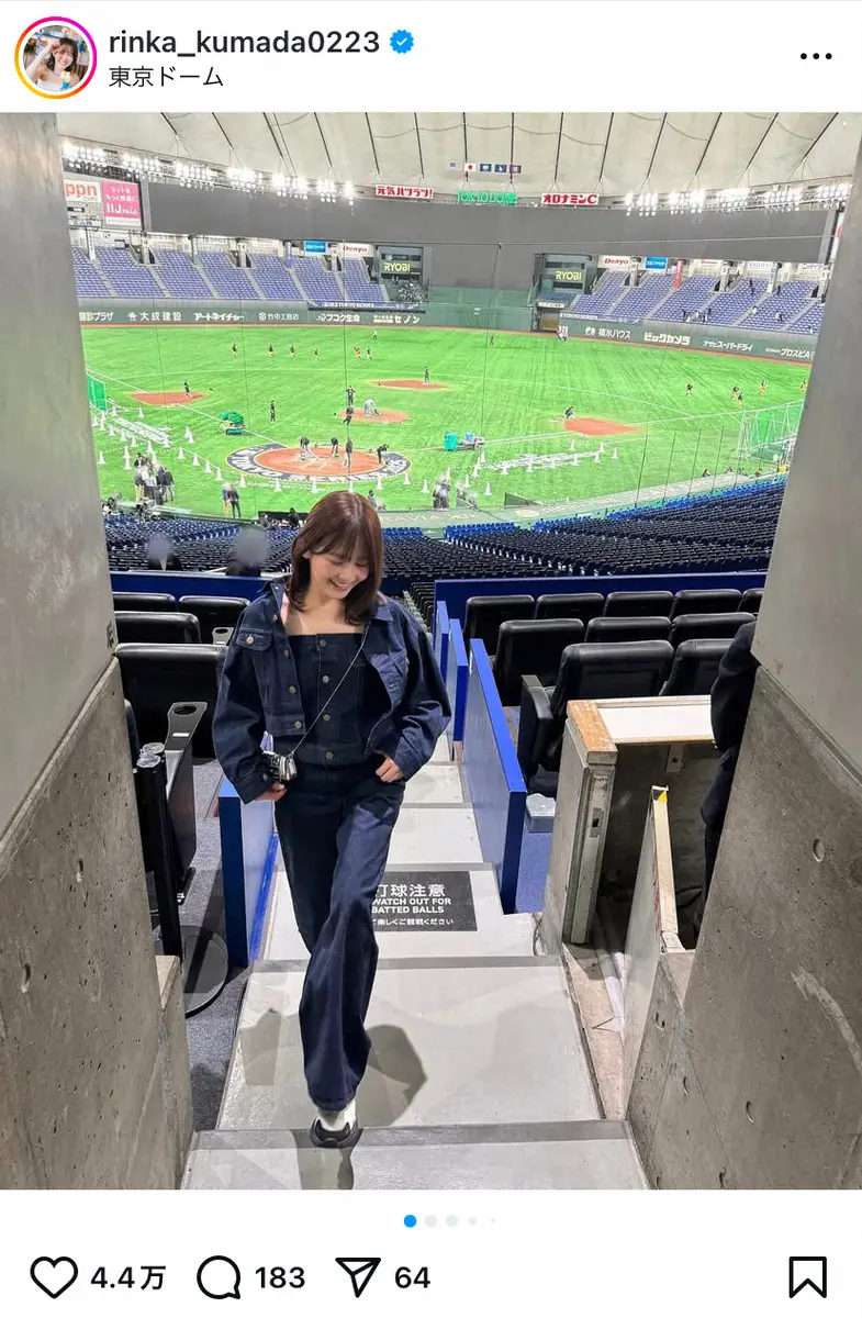 non-no専属モデルで女優の久間田琳加(24)が16日、自身のインスタグラムを更新。15日に東京ドームで行われたMLBプレシーズンゲーム・阪神-カブス戦を観戦したことを報告した。
