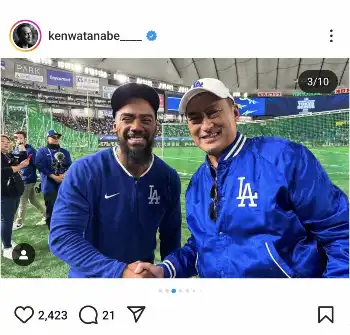 俳優の渡辺謙(65)が19日までに自身のインスタグラムを更新。東京ドームで行われたメジャー開幕戦カブス―ドジャース戦を生観戦したことを明かした。