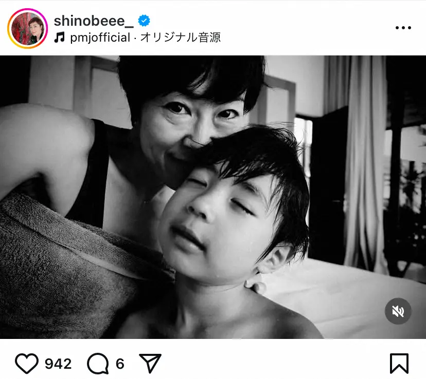 寺島しのぶ「早く薄着で過ごしたい」 長男・眞秀とのモノクロ2ショットに「とっても素適」の声