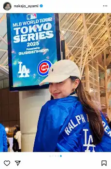 元NMB48メンバー メジャー開幕第2戦生観戦 ド軍ユニ姿披露「勝利の女神」「優馬くんも行ってる?」