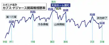 スポニチ集計「カブス―ドジャース」開幕戦視聴率 Photo by スポニチ 大谷、視聴率3割超え 開幕戦で勝ち越しホーム踏んだ瞬間、最高35・7% 昨… ギャラリーで見る この記事のフォト 2025年03月20日の画像一覧 もっと見る 2025年03月20日の画像をもっと見る