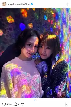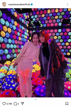 河北は「みれまゆat teamLab Planets」とコメント。「新エリアも凄すぎた~!」と、デジタルアートが体感できることで人気のミュージアム「チームラボプラネッツ TOKYO」の新エリアを訪れたことを報告。親交のある女優・桐谷美玲との2ショット写真を公開した。
