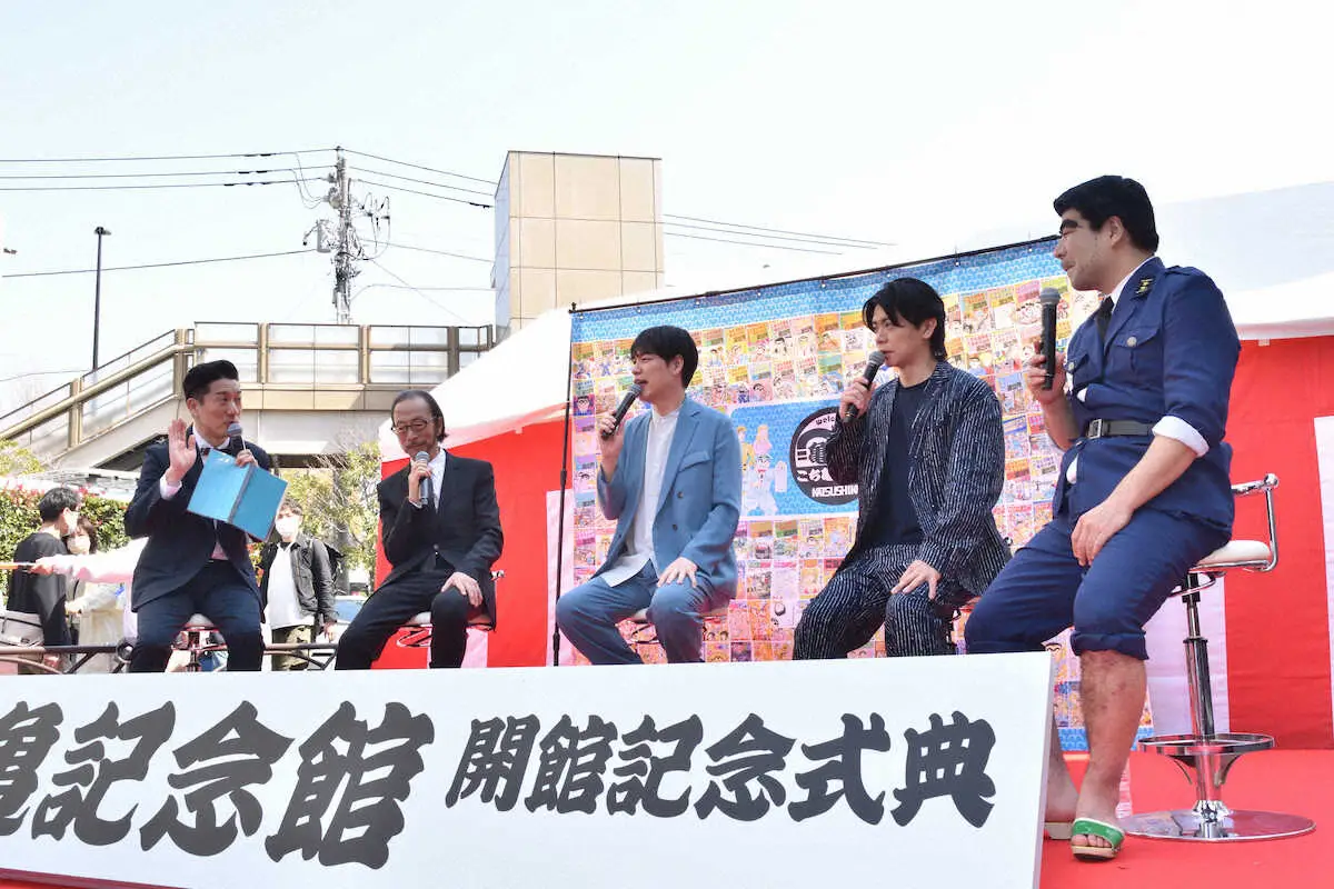 人気漫画「こちら葛飾区亀有公園前派出所」の世界観を楽しめる「こち亀記念館」が22日、東京・亀有にオープンした。開館を記念し作者の秋本治氏(72)と、「こち亀大好き芸人」であるお笑いコンビ「麒麟」の川島明(46)、「マヂカルラブリー」野田クリスタル(38)、「インポッシブル」ひるちゃん(38)が同所でトークショーを行った。