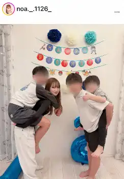 「この写真幸せすぎるし可愛すぎる」とつづり、次弟をおんぶするショットを公開。「大きくなっておんぶ大変だった!!!」と幸せいっぱいにつづった。