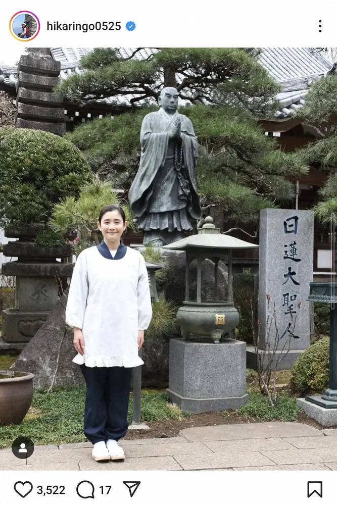 女優の石田ひかり(52)が24日、自身のインスタグラムを更新。「寺の嫁」を演じることになったと報告した。