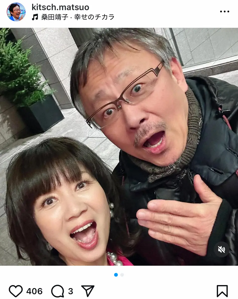 松尾は「先日の夜、渋谷のセルリアンタワー2階のライブハウス『渋谷 JZ Brat』前を通りかかったら、コンサート終わりでお客さんを送り出している桑田靖子さん に遭遇」とつづり、1983年にデビューした元アイドル・桑田靖子との2ショットをアップ。「声をかけたら『写真を撮りましょう!』と、記念に。もう30年ぶりくらいだろうか、懐かしい。邂逅嬉しゅうございます」と喜んだ。