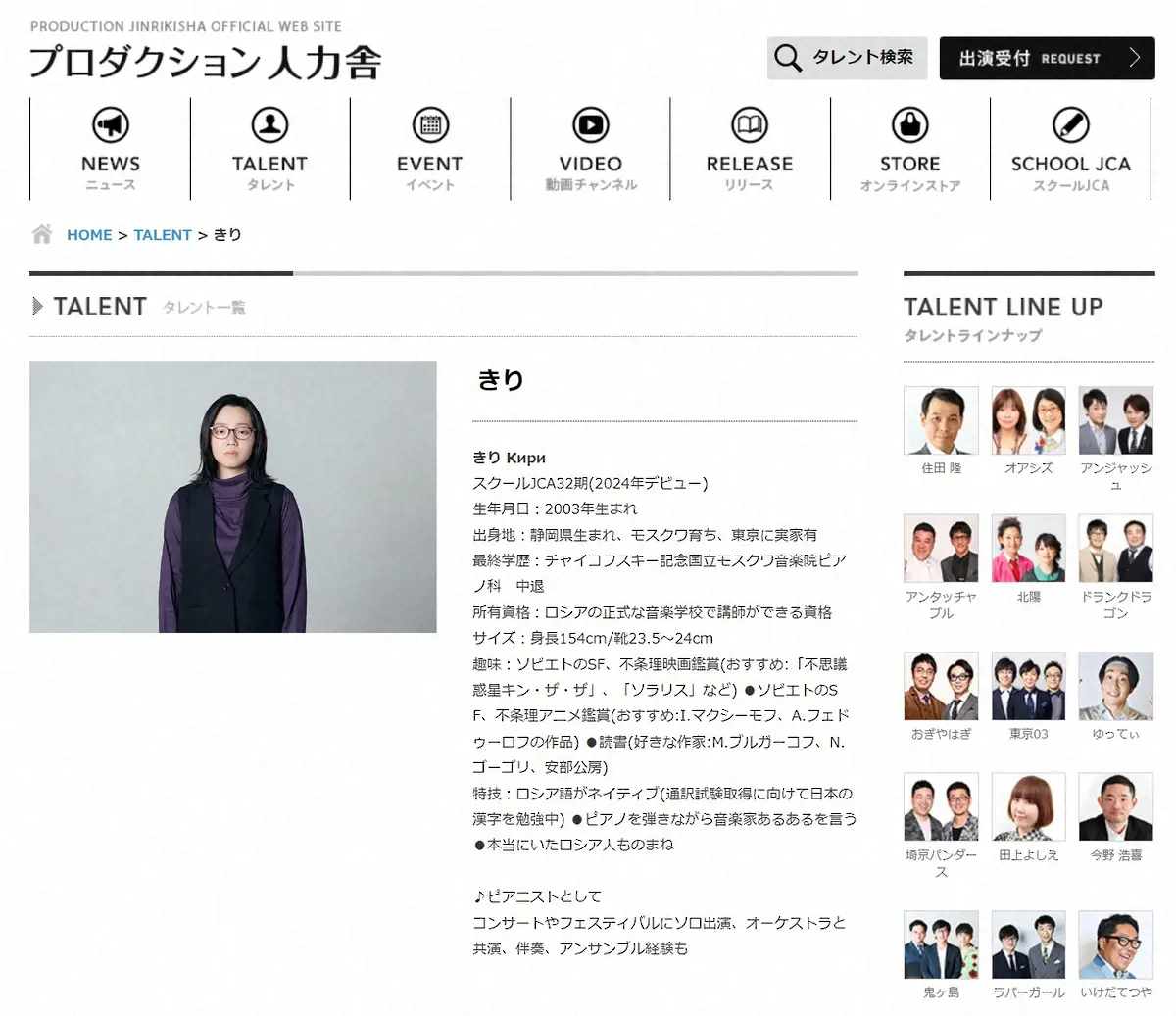 きり(人力舎公式サイトから) 世界三大音楽院に飛び級&主席入学のピアニストが芸人に きっかけは人気… ギャラリーで見る この記事のフォト 2025年03月25日の画像一覧 もっと見る 2025年03月25日の画像をもっと見る