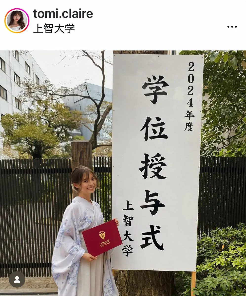 トミコ・クレアのインスタグラム(@tomi.claire)から 米国出身の24歳・美人タレント 名門大学卒業を袴スタイルで報告 「翔ん… ギャラリーで見る この記事のフォト 2025年03月25日の画像一覧 もっと見る 2025年03月25日の画像をもっと見る