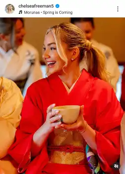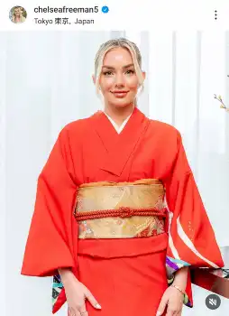 ドジャースのフレディ・フリーマン内野手(35)の妻で元モデルのチェルシー夫人が24日(日本時間25日)、自身のインスタグラムを更新。日本滞在時のお茶会で着用した赤い着物姿を公開した。