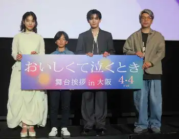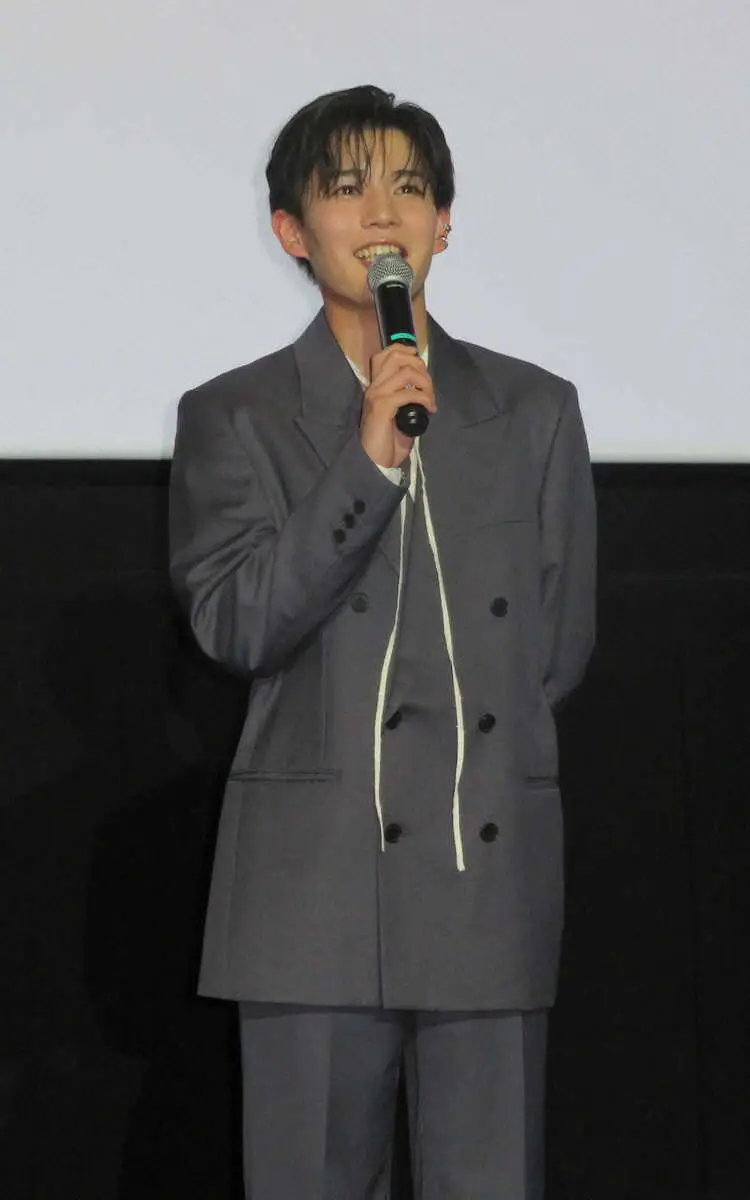 「なにわ男子」長尾謙杜(22)主演の映画「おいしくて泣くとき」(4月4日公開、監督横尾初喜)の大阪特別試写会が25日、同市内で行われ、長尾が横尾監督、當真あみ(18)と急きょ、舞台あいさつに立った。