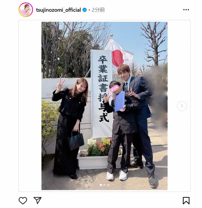 辻は「今日はソラの小学校卒業式でした」と書き出し、「我が家の3回目の小学校卒業式…何度経験しても泣けますがソラの卒業は何だか今までとは違う気持ちになりました 今までで1番実感が湧かない」と胸中を明かした。
