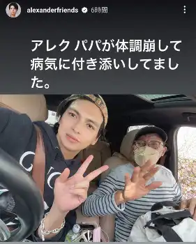 アレクは26日、タイに移住した父のホルヘさんから「日本に帰りたい」と“緊急電話”があったと投稿。「なんか急に体力が 落ちてしまったとの事で、、、」という。「五日間ほど色々バタバタしてて連絡取ってなく、、、まさか、、」と、突然の連絡に驚いたアレク。「電話したら全然元気がなくてね、、、、かなり心配してました」とショックをつづった。