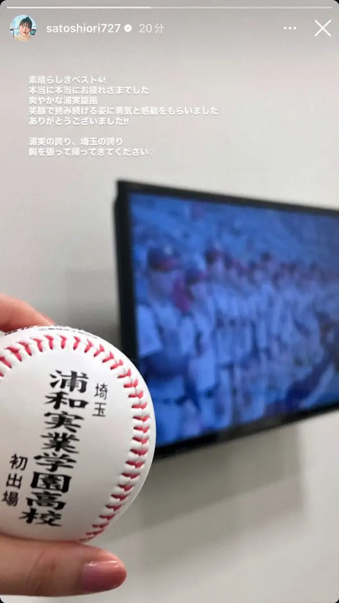 初出場で4強入りを果たした浦和実は、この日智弁和歌山と対戦したが、0-5で敗れた。佐藤は母校の名前が印字されたボールの写真を投稿し、「素晴らしきベスト4!本当に本当にお疲れさまでした」とメッセージを送った。