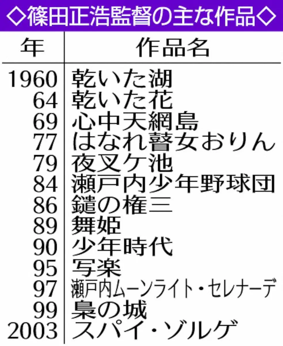 77年、「はなれ瞽女おりん」 Photo by 提供写真 篠田正浩さん死去 94歳、肺炎で 「瀬戸内少年団」「少年時代」…岩下志麻… ギャラリーで見る この記事のフォト 2025年03月28日の画像一覧 もっと見る 2025年03月28日の画像をもっと見る
